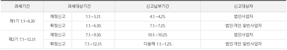 - 2기 (7~12월 매출): 다음 해 1월 1일부터 1월 25일까지