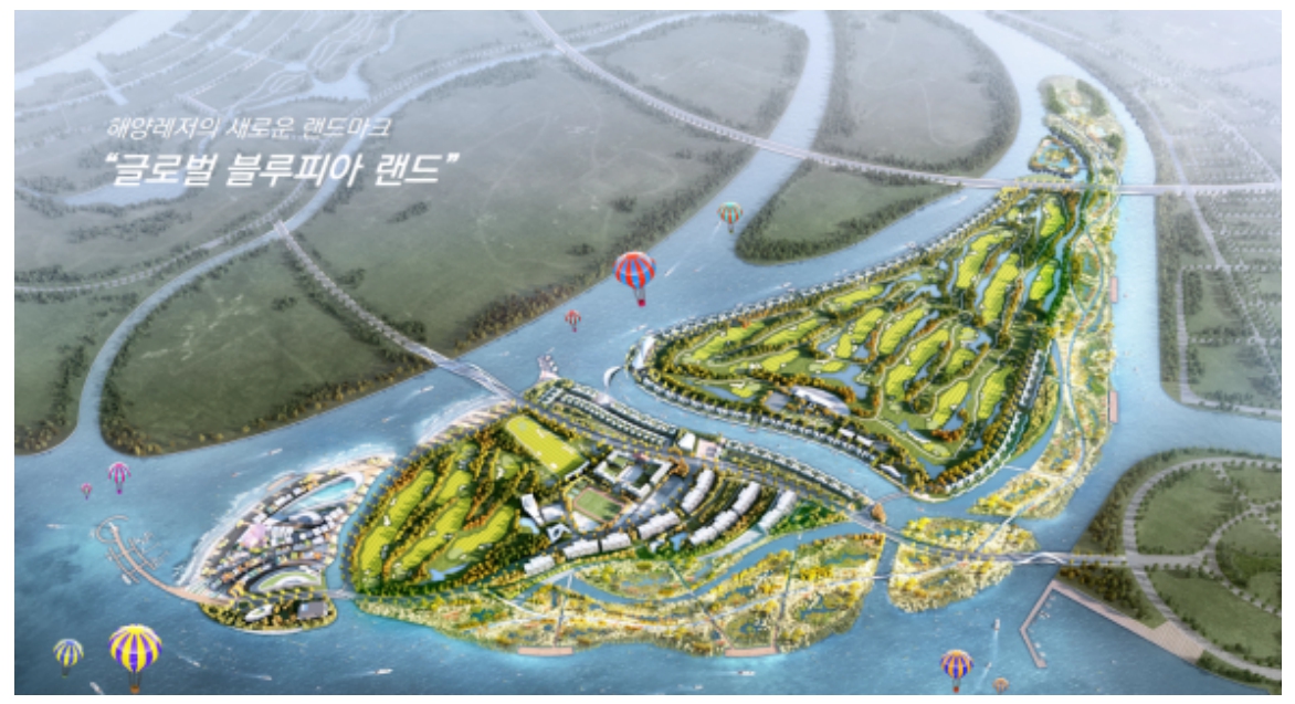 - 이 연합체는 골프장, 웨이브 파크, 마리나 및 해양레포츠 센터 등의 관광레저 시설 및 요트 빌리지, 골프 풀빌라 등의 주거. 숙박시설, 국제 골프학교 등을 조성하는 내용을 제안