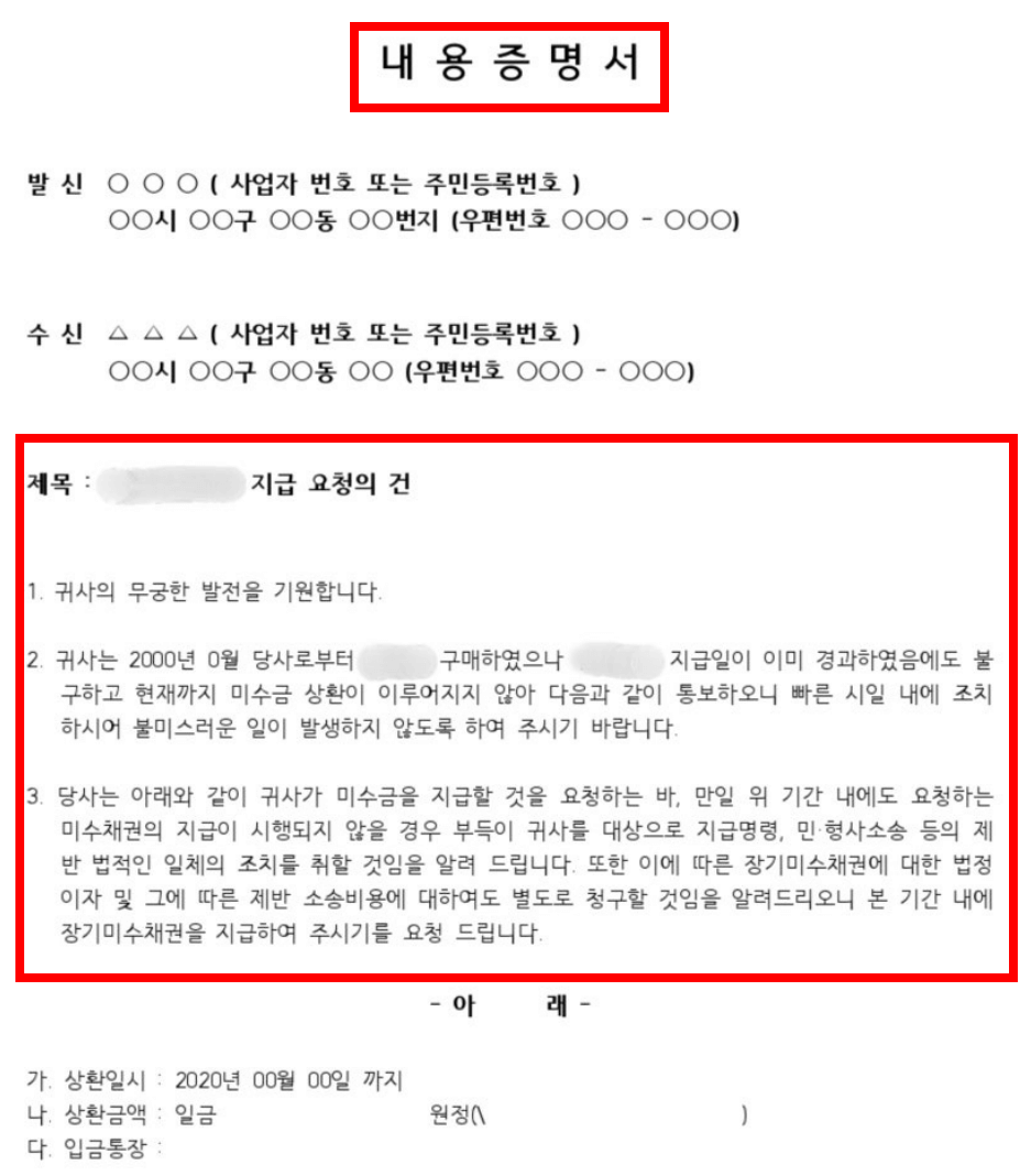 - 제목: 예시) "채무 상환 요청" 또는 "계약 위반 경고"