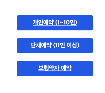 - 1~10인까지는 개인 예약, 11인 이상은 단체 예약