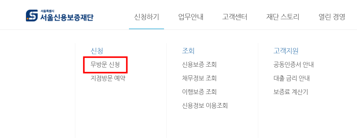 ▶ 무방문 신청 (신용보증재단 누리집)