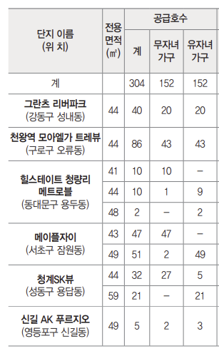 - 신규 공급 지역: 강동구, 구로구, 동대문구, 서초구, 성동구, 영등포구