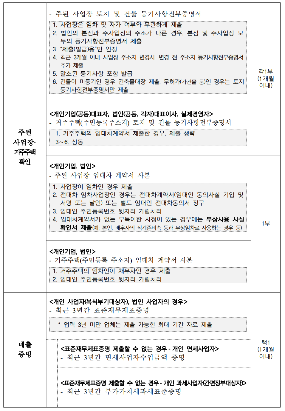✔️ 매출 기준은 따로 적혀 있지는 않지만, 작년 매출이 1억 이상은 나와야 하는 것을 볼 수 있습니다.