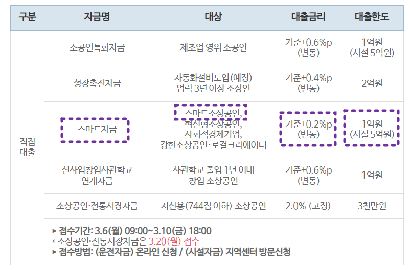 소상공인정책자금에서 직접 대출해주는 스마트자금 들어보셨나요? 최대 1억 한도, 5년 상환이며, 3월 10일 (금)까지 접수를 받으니 아래 조건 확인하시고 된다고 하시면 서둘러서 신청하세요. 예산 소진 시까지만 운영되기 때문에 시간이 없습니다.