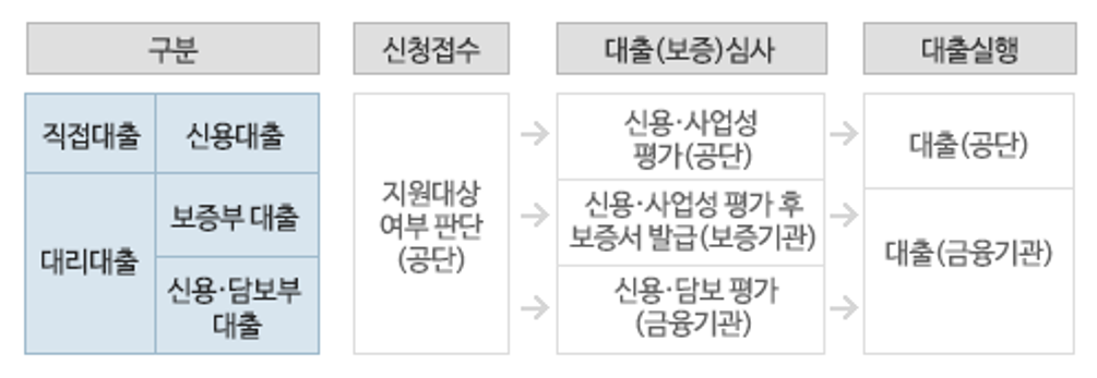 정책 융자 지원 시 어떻게 되는지 절차에 대해 간단하게 보면 이렇습니다.
