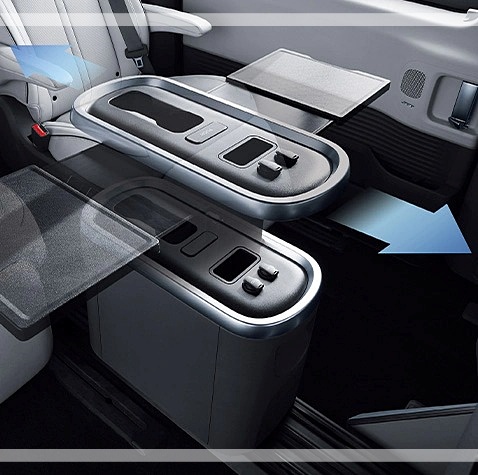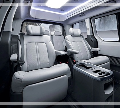 이와 함께 슬라이딩 도어 개폐에 따라 자동으로 전개되는 2열 동승석 전동 발 받침대(사이드 스텝)는 편안하고 안전한 승하차를 돕는다. 실내는 기본 트림의 높이보다 205㎜를 높이고, 1열에서 2~3열까지 이동 가능한 콘솔을 적용해 공간 활용성을 높였습니다.