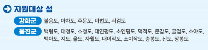 총 25개 섬이 지원 대상입니다. 아래 지역에 포함된 섬이라면 인천 아이 바다패스로 저렴하게 갈 수 있어요.