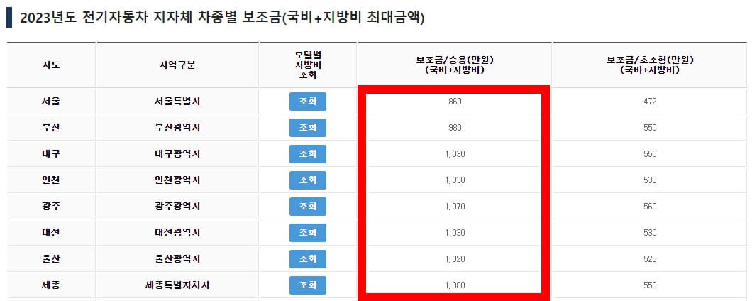 자세한 지역별/ 모델별 보조금은 아래에 들어가서 확인하셔야 합니다.