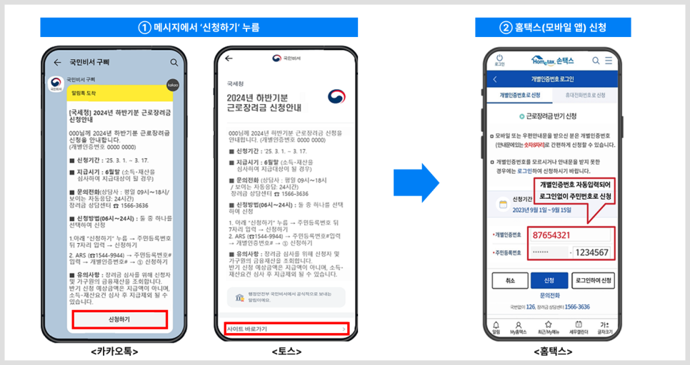 - 정부에서 보낸 카카오톡, 네이버, 토스 등의 알림 메시지 확인