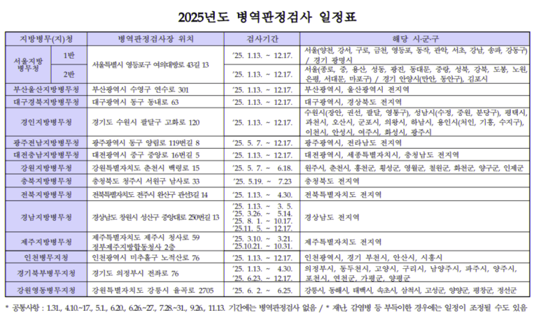 거주지 관할 병무청을 기본으로 하되, 특별한 사유가 있다면 인근 병무청에서도 검사 가능합니다.