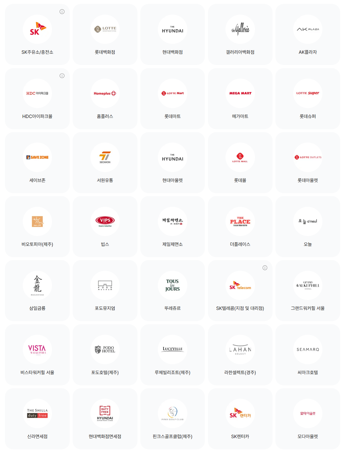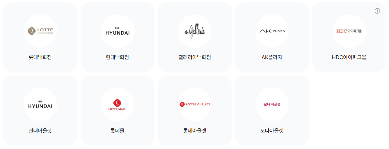 백화점과 아울렛에서 활용할 수 있는데요, 구체적인 사용처는 다음과 같습니다.