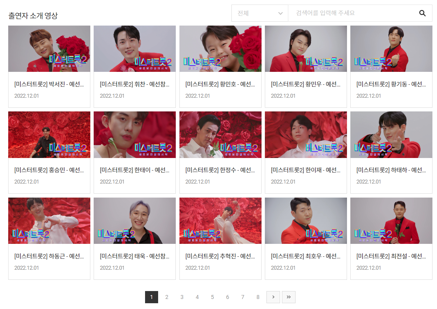참가자 전부의 소개 영상이 티비조선 홈페이지에 있으니 관심 가는 사람의 소개 영상을 미리 보시고 누가 우승할지 미리 점쳐보시는 것도 좋겠습니다.