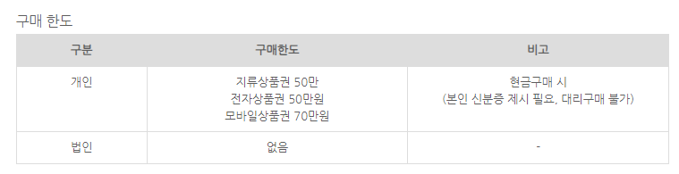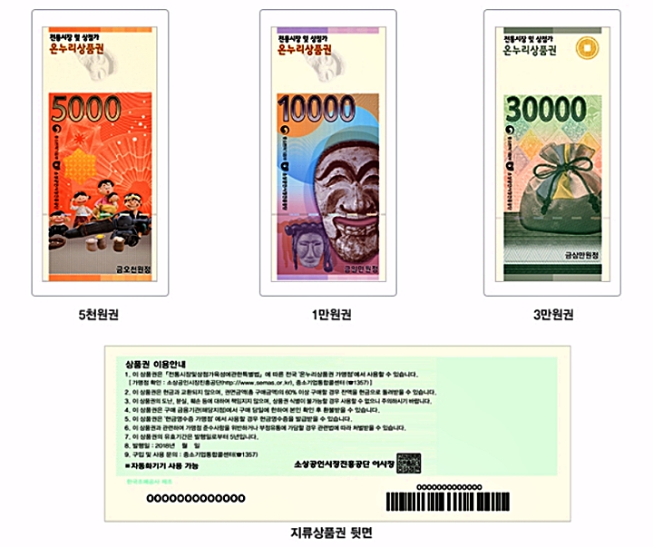 전통시장과 같은 재래시장의 활성화를 하기 위해 일반적으로 5%의 할인을 통해 판매되는 상품권입니다. 월 구매한도는 50만 원 선이며, 지류, 카드, 모바일과 같은 다양한 종류로 사용 가능하며, 현금영수증 발급도 가능합니다.