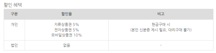 - 권면 금액의 60% 이상 구매할 경우 잔액을 현금으로 돌려받습니다.