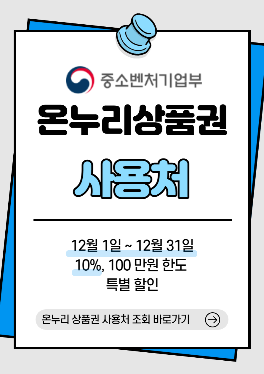 중소벤처기업부에서 12월 1일부터 온누리상품권 특별 할인행사를 진행한다고 발표했습니다. 지류·모바일·카드 구매 방법을 알아보고, 온누리상품권 사용처는 어디가 되는지 안내해드리겠습니다.